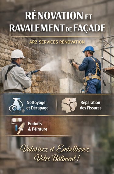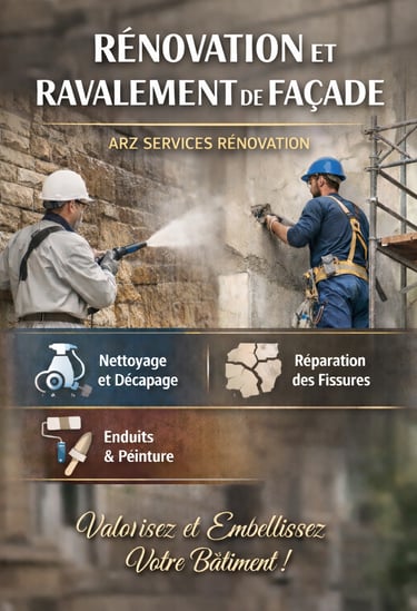ARZ Services Rénovation intervient dans la rénovation et le ravalement de façade afin de protéger et valoriser vos bâtiments, en traitant les dégradations et en garantissant des finitions durables et conformes aux normes.